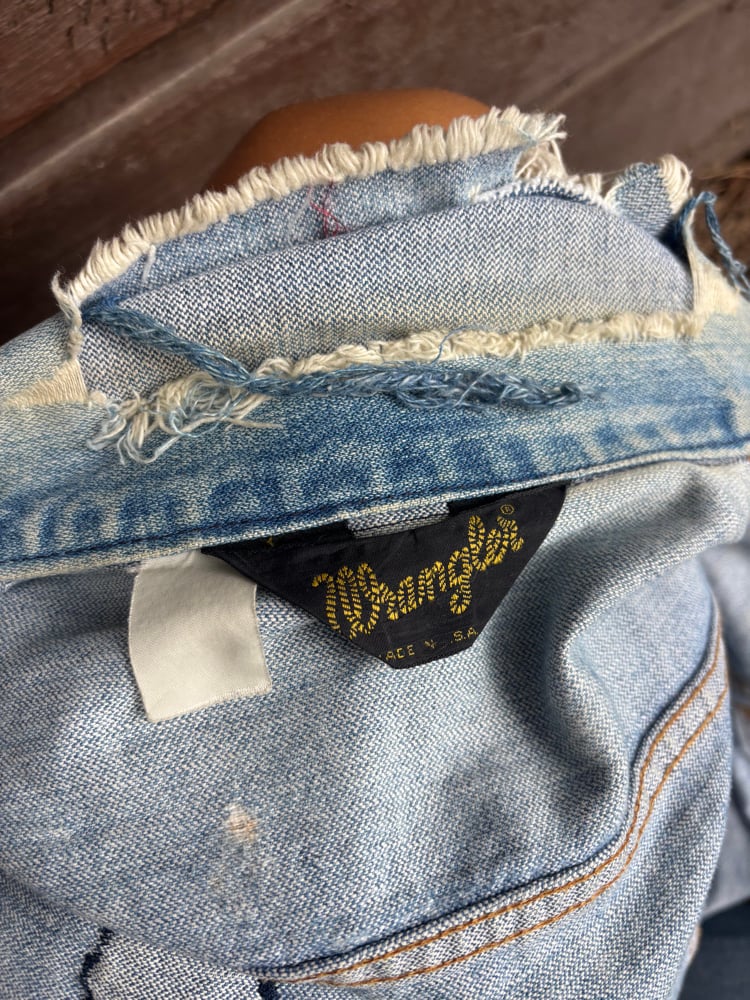 Rare 1970s Wrangler distressed denim jacket with Honda eagle patch on back