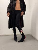 Black knit Rick Owens Lilies leggings with elastic waistband and asymmetrical seams on thighs